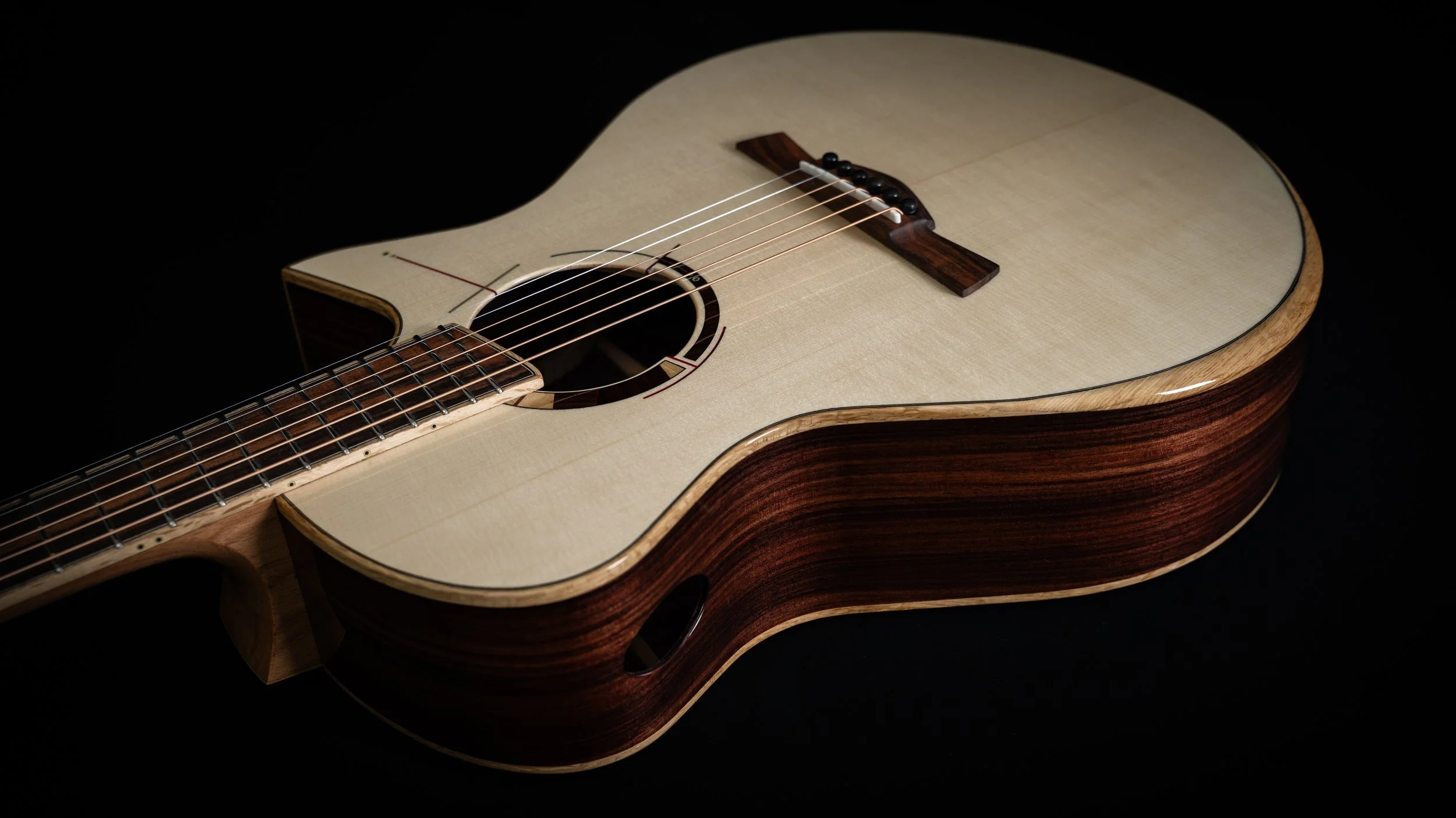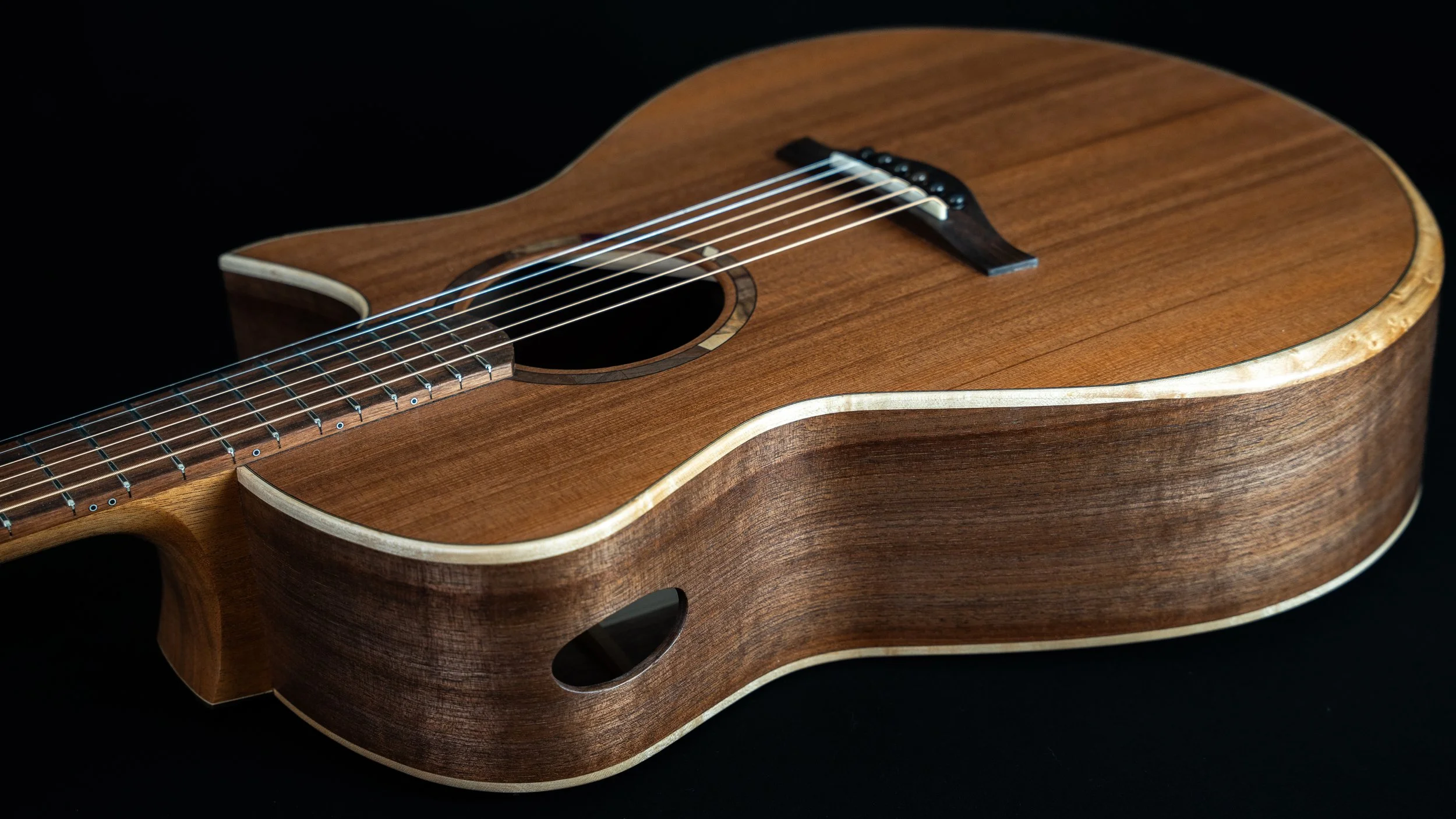 The design of the Model Q guitar features an innovative asymmetrical body that not only elevates its aesthetic appeal but also enhances playability. The unique contours are meticulously crafted to fit the natural shape of the player's body, allowing for a comfortable grip and effortless access to the fretboard. This ergonomic design prioritizes the musician's experience, minimizing fatigue during extended playing sessions. Every curve serves a purpose, promoting a seamless connection between the player and the instrument, ultimately resulting in a guitar that feels like an extension of oneself.
