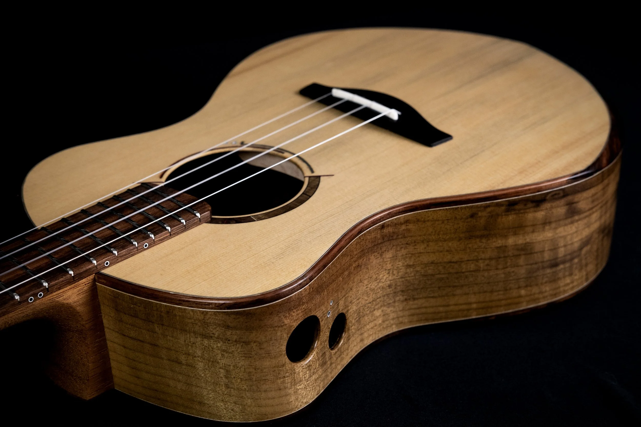 The B Model ukulele features a baritone body size, offering a deeper and richer tone compared to smaller ukulele models. Its larger body provides enhanced volume and resonance, making it ideal for players seeking a fuller sound. The baritone size is perfect for those transitioning from guitar to ukulele, as it is tuned similarly to the top four strings of a guitar, allowing for easy chord adaptation. Crafted with quality materials, the Model B balances playability and sound, making it a versatile choice for both beginners and experienced musicians.