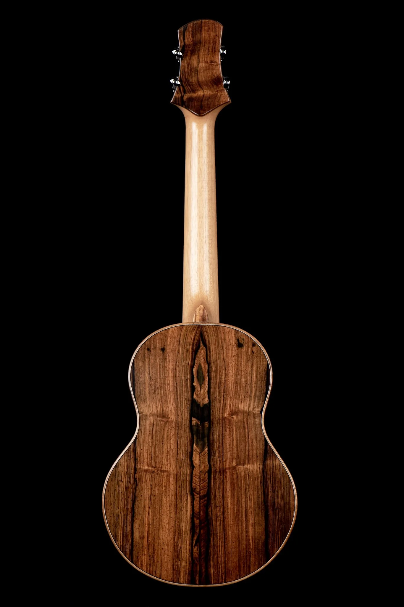 The T Model ukulele features a tenor body size, offering a balanced blend of rich tone and playability. Its slightly larger size compared to soprano and concert ukuleles provides a deeper, fuller sound while maintaining comfort for most hand sizes. Ideal for both beginners and experienced players, the tenor body enhances projection and sustain, making it a versatile choice for various musical styles.